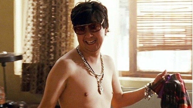 Ken Jeong var alger snilld sem glæpamaðurinn Mr. Chow. Hver man ekki eftir atriðinu þegar hann stekkur upp úr skottinu og ræðst á alla? Alveg berrassaður! Nema brúskurinn var svo stór að það var eins og hann væri í hálfgerðri lendaskýlu.