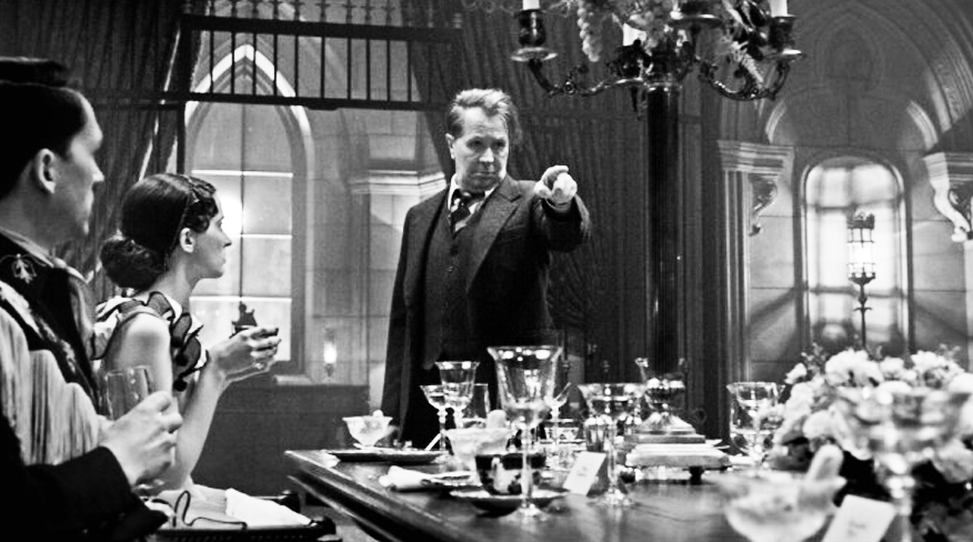 Persónusköpun Manks, í framúrskarandi túlkun leikarans Gary Oldman, er prýðilega kortlögð á þessum tveimur tímum. Oldman er bæði rangur en hárréttur maður í hlutverkið; vitlaust valinn í þeim skilningi að leikarinn er um 30 árum of gamall fyrir rulluna en yfirstígur furðulega þann hjalla með því að vera ávallt ánægjulegur áhorfs. Hann fetar þá fínu línu að gera fráhrindandi, sjálfshatandi og -dýrkandi mann að viðkunnanlegum sjarmör. Líkt og Sara, hin óendanlega umburðarlynda eiginkona hans (frábærlega leikin af Tuppence Middleton), segir sjálf: Mank er allt annað en leiðinlegur.