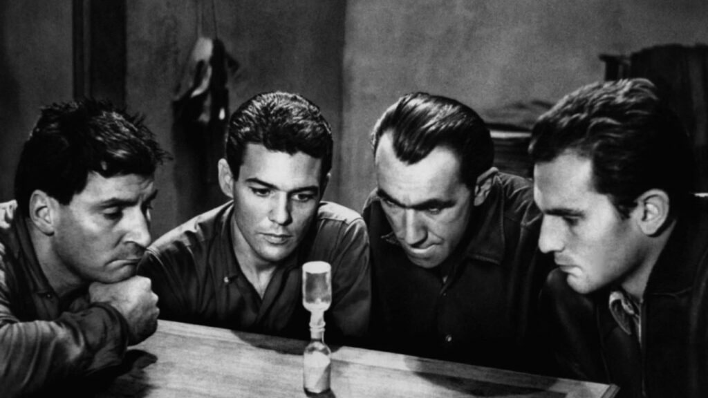 12 Angry Men eftir Sidney Lumet gerist nær alfarið inni í kviðdómsherbergi þar sem tólf karlmenn þurfa að ákveða örlög ungs manns sem ákærður er fyrir morð. Allir virðast sammála um sekt hans, nema einn, leikinn af Henry Fonda, sem byrjar að efast og krefst þess að málið sé rætt til hlítar. Myndin er meistaralegt dæmi um hversu spennandi kvikmynd getur orðið án hasars, tónlistar eða tæknibrellna. Hún byggir eingöngu á samtölum, persónulegum átökum og frammúrskarandi leik og handriti. 12 Angry Men er sígild og áhrifamikil rannsókn á fordómum, samvisku og siðferðislegri ábyrgð, og minnir á að stundum nægir ein rödd til að breyta öllu.