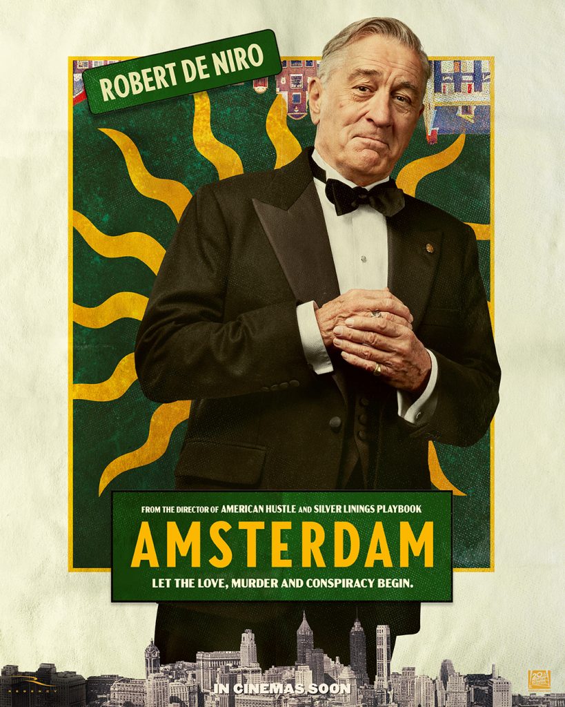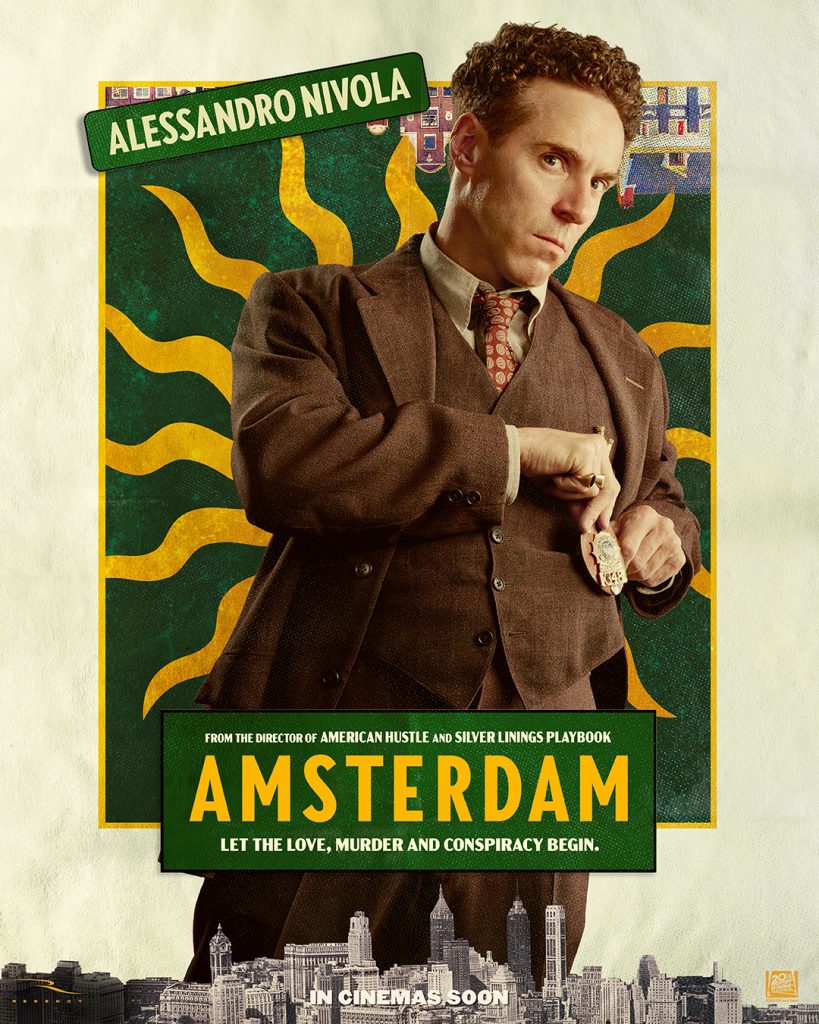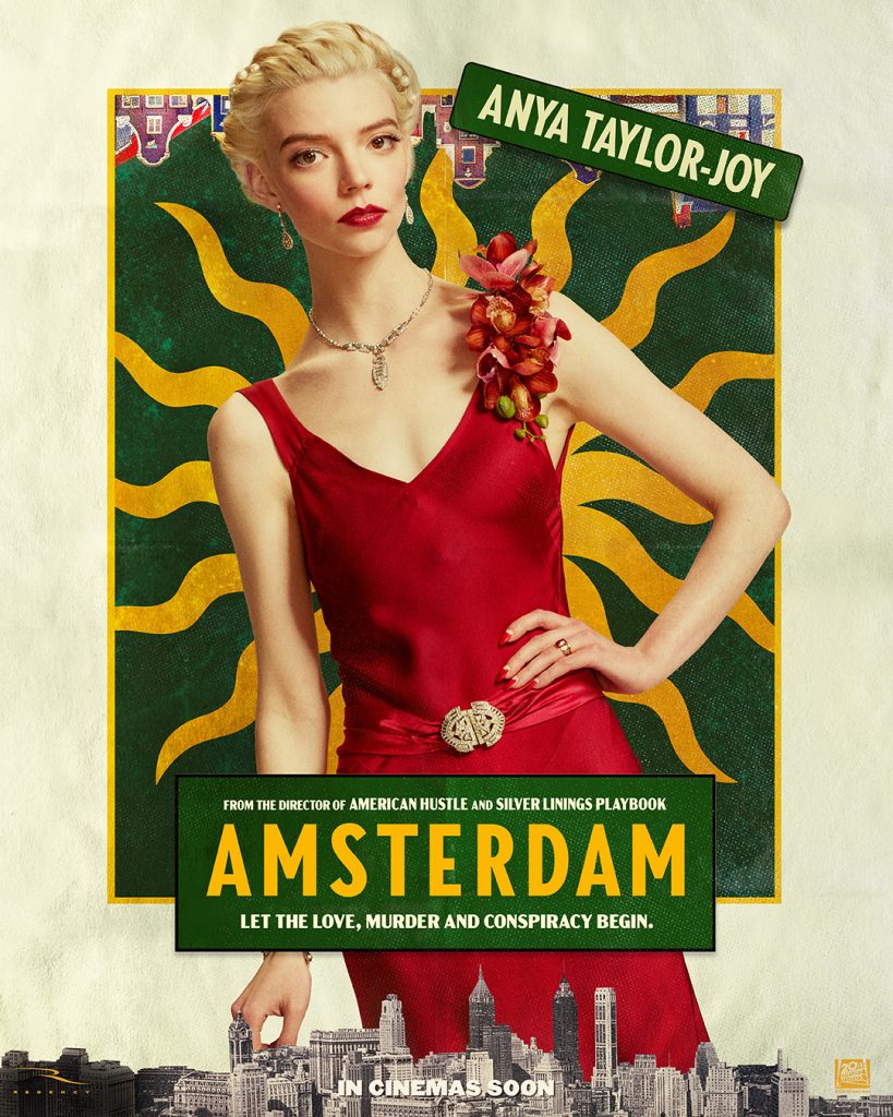 Amsterdam kemur í bíó á Íslandi 7. október nk. Hún gerist á fjórða áratug síðustu aldar og segir frá þremur vinum sem verða vitni að morði, en eru sjálfir grunaðir um verknaðinn. Þeir afhjúpa síðan eina svívirðilegastu fyrirætlun í sögu Bandaríkjanna.