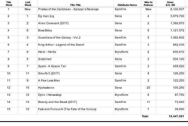 Sömu sögu er að segja frá Bandaríkjunum, en þar í landi varð þessi nýjasta Pirates mynd langaðsóknarmest nú um helgina með meira en 77 milljónir bandaríkjadala í tekjur.