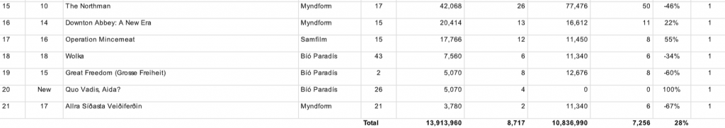 Sjáðu bíóaðsóknarlistann í heild sinni hér fyrir neðan:
