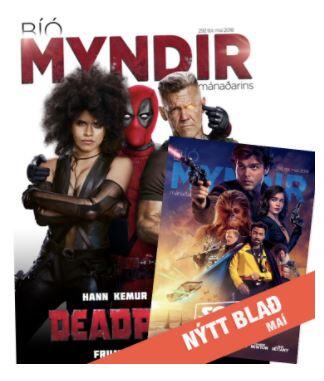 Á forsíðum blaðsins eru tvær myndir sem margir hafa beðið eftir með mikilli eftirvæntingu – annarsvegar ofurhetjumyndin Deadpool 2, framhald Deadpool sem sló í gegn árið 2016, og hins vegar er mynd sem er heldur ekki af verri endanum, Solo: A Star Wars Story, sem er hliðarsaga úr heimi Stjörnustríðs. Deadpool 2 kemur í bíó 16. maí, og Han Solo kemur í bíó 23. maí.