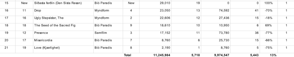 Í þriðja sæti listans er svo Sinners, sem var í öðru sæti í síðustu viku.
